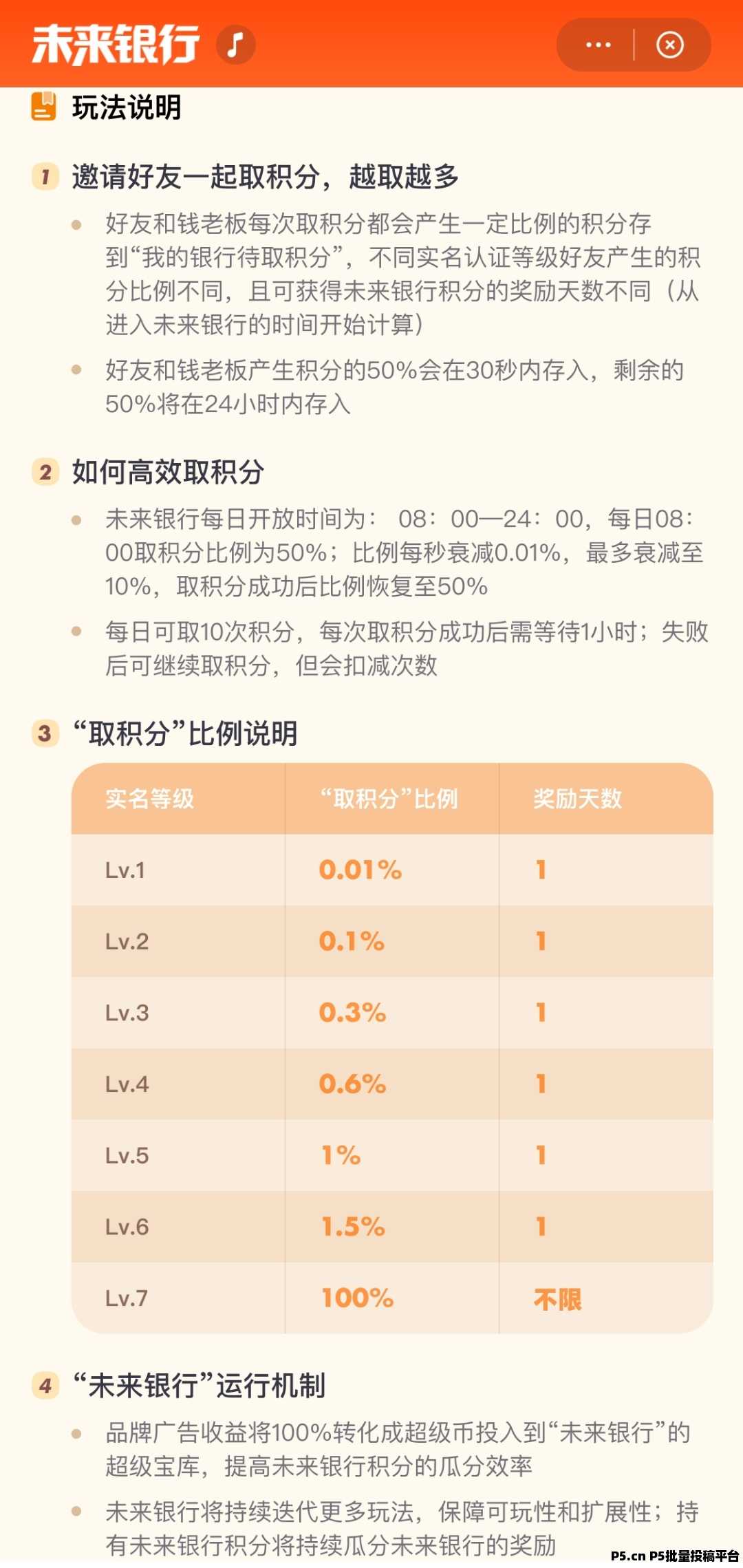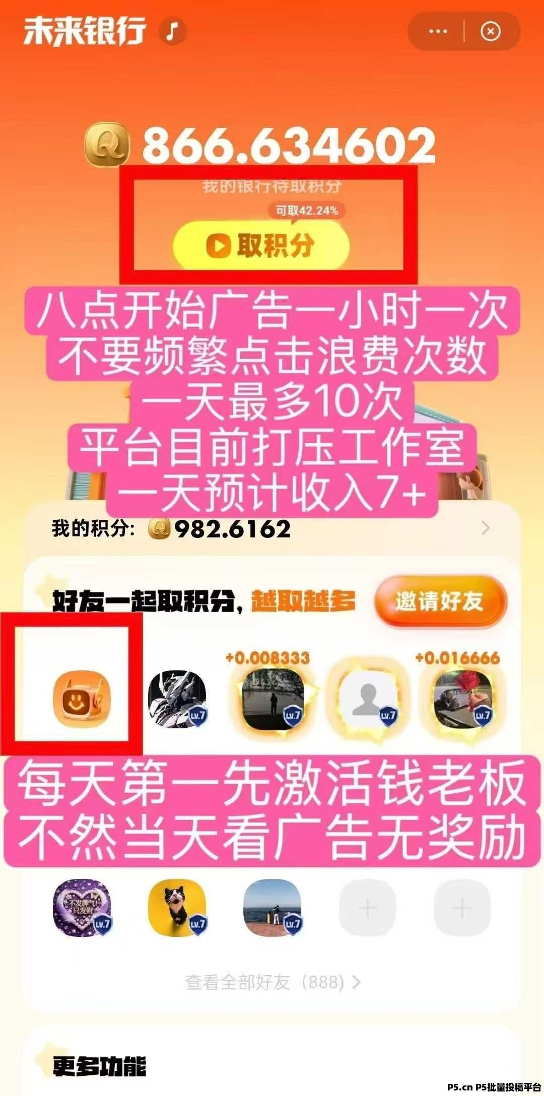 刘哥2025.07.11发布关注私信 正文开始阅读,请点击右上角“关注”按钮,关注我们 ------正文内容展示丨开始阅读内容------ 未来银行赚钱 进入未来银行的群,新用户首次进入会送10积分,这个积分可以在市场里面直接卖掉换成超级币,而一个超级币现在是70+,一个人一个号每天可以获得66+积分,一个积分0.15,一天10多块,每天看10个广告即可,一个小时一次 ------本页内容已结束丨喜欢请点赞分享------ 感谢您的来访,获取更多精彩文章请收藏本站。 © 版权声明 版权声明 1 本网站名称:亿多多首码网 2 本站永久网址:https://507c.com 3 本网站部分内容来源于网络,仅供大家学习与参考,如有侵权,请联系站长进行删除处理。 4 本站一切资源不代表本站立场,并不代表本站赞同其观点和对其真实性负责。 5 本站一律禁止以任何方式发布或转载任何违法的相关信息,访客发现请向站长举报。 6 本站资源大多存储在云盘,如发现链接失效,请联系我们我们会第一时间更新。 THE END网赚项目零撸项目项目资讯首码项目# 零撸项目# 网赚# 项目首码 喜欢就支持一下吧点赞11 分享QQ空间微博QQ好友海报分享复制链接收藏